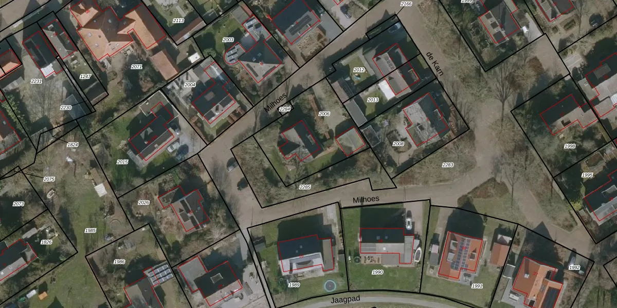 Het perceel waarop Milhoes 1 staat heeft een oppervlakte van 706 m². Dit is een groot perceel. De perceeloppervlakte wordt geregistreerd door het Kadaster. Gedetailleerde informatie over de maten van dit perceel kunt u vinden in het rapport Kadastrale kaart met maatvoering van Milhoes 1.