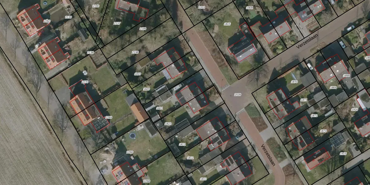Gebruik de zoekbalk of klik op een perceel voor informatie over de adressen binnen dit perceel.