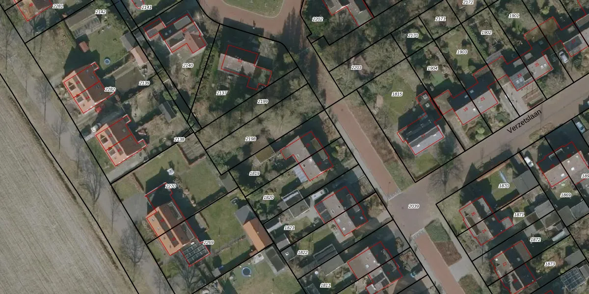 Verzetslaan 15 is gelegen op kadastraal perceel MDM02A1819. Deze kadastrale aanduiding is uniek en wordt gebruikt door het Kadaster om eigendomsrechten en andere zakelijke rechten vast te leggen. Het perceel maakt onderdeel uit van de kadastrale gemeente Mildam.