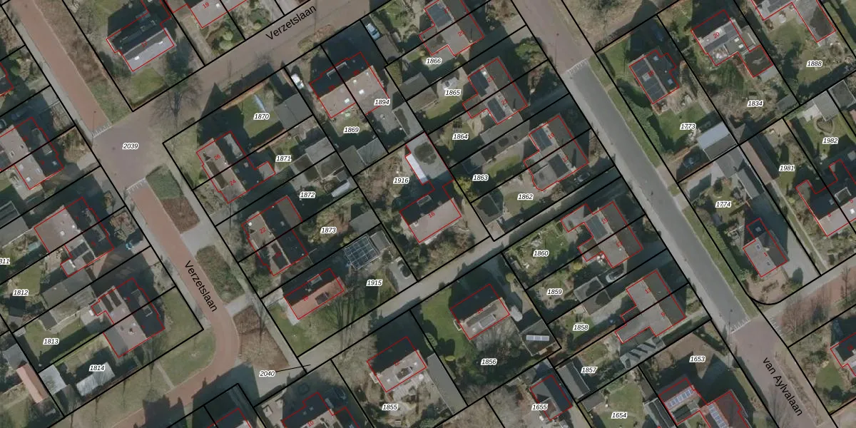 Het perceel waarop Verzetslaan 16 staat heeft een oppervlakte van 577 m². Dit is een groot perceel. De perceeloppervlakte wordt geregistreerd door het Kadaster. Gedetailleerde informatie over de maten van dit perceel kunt u vinden in het rapport Kadastrale kaart met maatvoering van Verzetslaan 16.