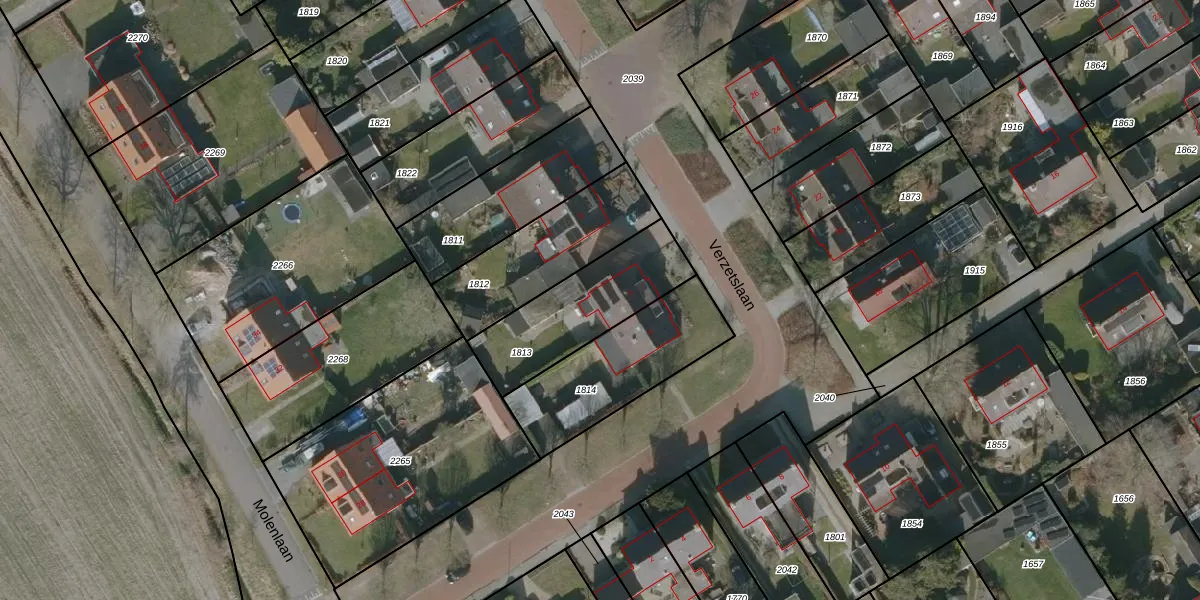 Gebruik de zoekbalk of klik op een perceel voor informatie over de adressen binnen dit perceel.