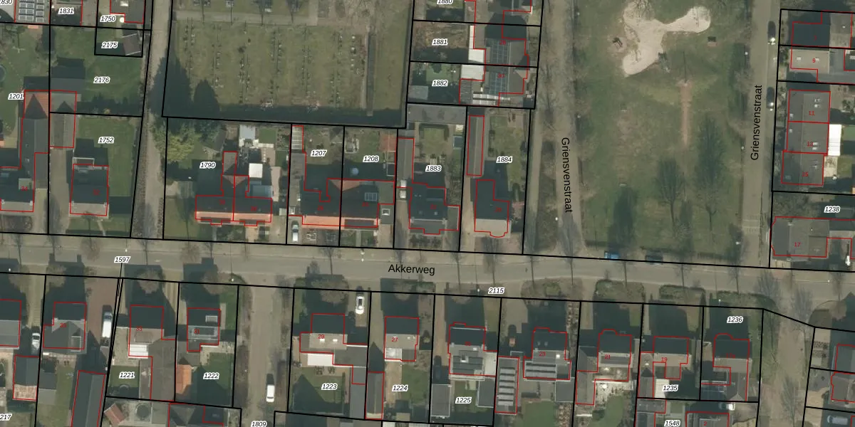 Het perceel waarop Akkerweg 22 staat heeft een oppervlakte van 533 m². Dit is een groot perceel. De perceeloppervlakte wordt geregistreerd door het Kadaster. Gedetailleerde informatie over de maten van dit perceel kunt u vinden in het rapport Kadastrale kaart met maatvoering van Akkerweg 22.