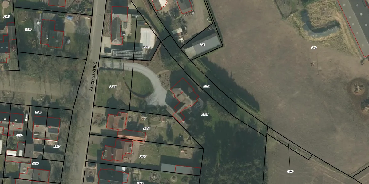 Het perceel waarop Antoniusstraat 1-a staat heeft een oppervlakte van 3394 m². Dit is een zeer groot perceel. De perceeloppervlakte wordt geregistreerd door het Kadaster. Gedetailleerde informatie over de maten van dit perceel kunt u vinden in het rapport Kadastrale kaart met maatvoering van Antoniusstraat 1-a.
