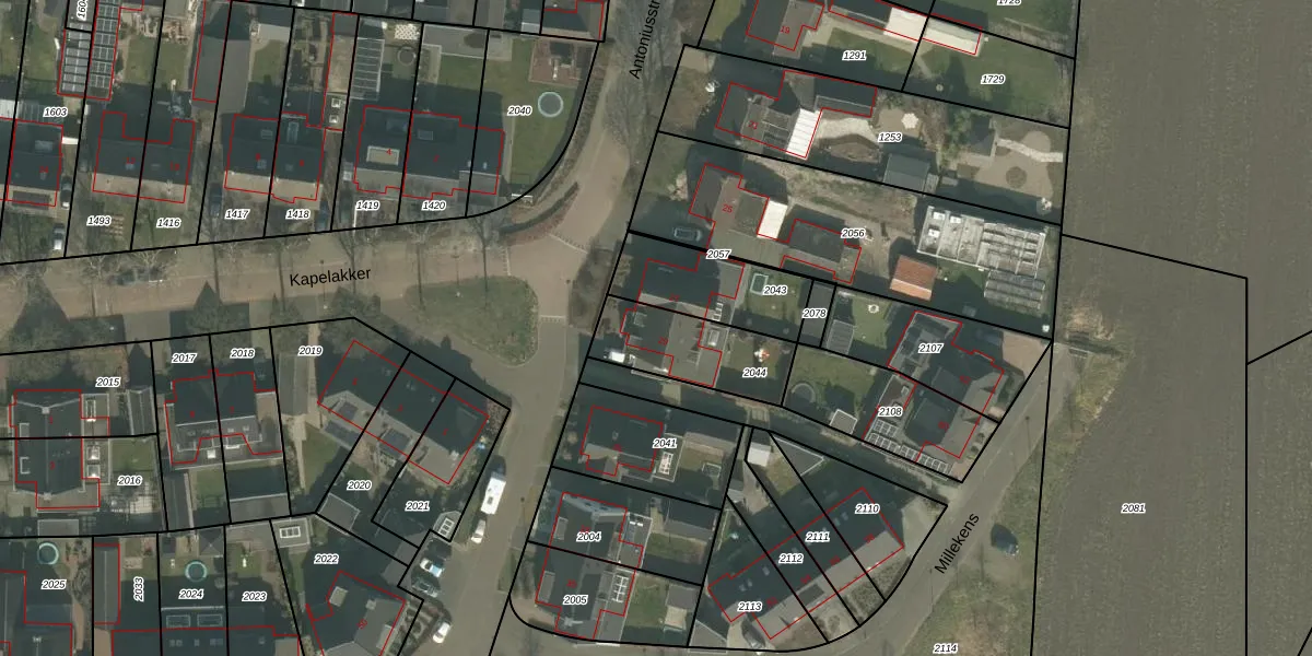Antoniusstraat 29 is gelegen op kadastraal perceel BKL02P2044. Deze kadastrale aanduiding is uniek en wordt gebruikt door het Kadaster om eigendomsrechten en andere zakelijke rechten vast te leggen. Het perceel maakt onderdeel uit van de kadastrale gemeente Bakel en Milheeze.