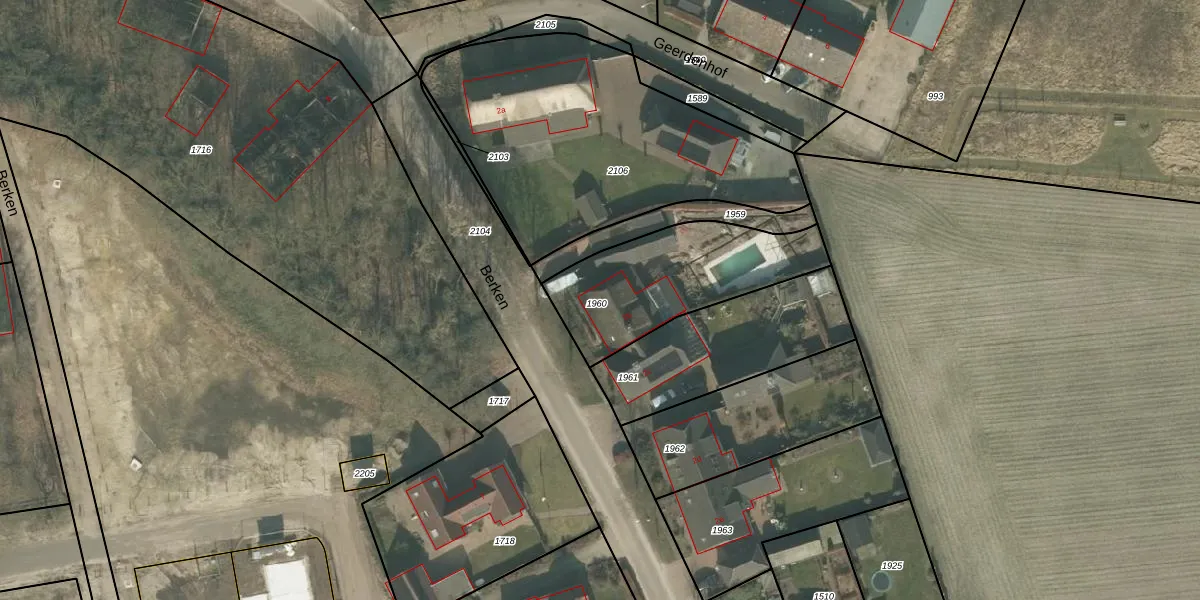 Het perceel waarop Berken 2-b staat heeft een oppervlakte van 593 m². Dit is een groot perceel. De perceeloppervlakte wordt geregistreerd door het Kadaster. Gedetailleerde informatie over de maten van dit perceel kunt u vinden in het rapport Kadastrale kaart met maatvoering van Berken 2-b.