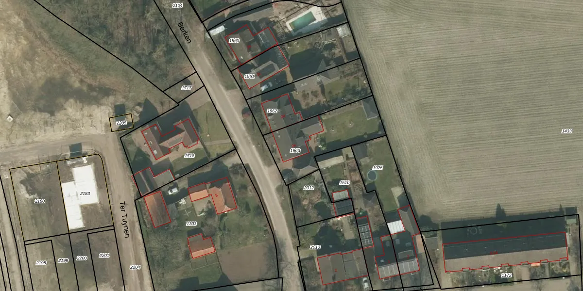 Het perceel waarop Berken 2-e staat heeft een oppervlakte van 595 m². Dit is een groot perceel. De perceeloppervlakte wordt geregistreerd door het Kadaster. Gedetailleerde informatie over de maten van dit perceel kunt u vinden in het rapport Kadastrale kaart met maatvoering van Berken 2-e.