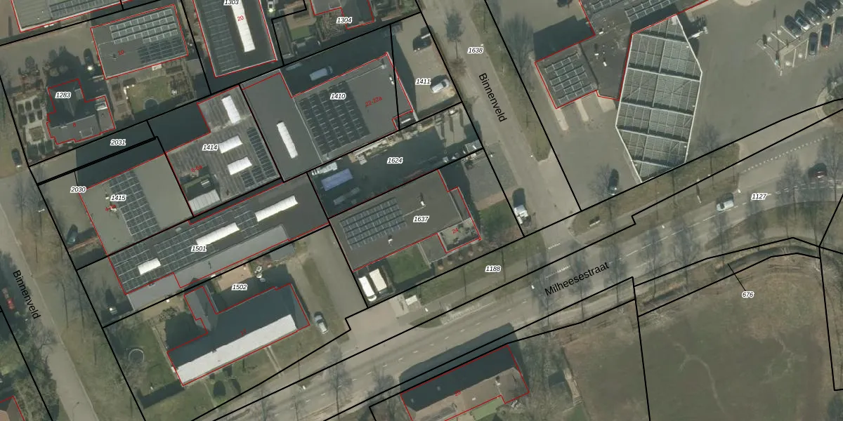 Binnenveld 24 is gelegen op kadastraal perceel BKL02B1637. Deze kadastrale aanduiding is uniek en wordt gebruikt door het Kadaster om eigendomsrechten en andere zakelijke rechten vast te leggen. Het perceel maakt onderdeel uit van de kadastrale gemeente Bakel en Milheeze.