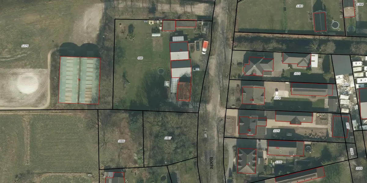 Het perceel waarop Bocht 7 staat heeft een oppervlakte van 2515 m². Dit is een zeer groot perceel. De perceeloppervlakte wordt geregistreerd door het Kadaster. Gedetailleerde informatie over de maten van dit perceel kunt u vinden in het rapport Kadastrale kaart met maatvoering van Bocht 7.