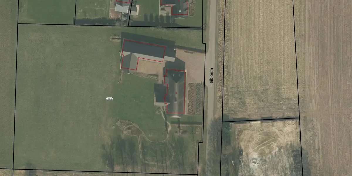Het perceel waarop Heibloem 3 staat heeft een oppervlakte van 8840 m². Dit is een zeer groot perceel. De perceeloppervlakte wordt geregistreerd door het Kadaster. Gedetailleerde informatie over de maten van dit perceel kunt u vinden in het rapport Kadastrale kaart met maatvoering van Heibloem 3.