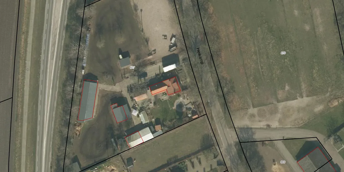 Het perceel waarop Heikamp 2 staat heeft een oppervlakte van 6235 m². Dit is een zeer groot perceel. De perceeloppervlakte wordt geregistreerd door het Kadaster. Gedetailleerde informatie over de maten van dit perceel kunt u vinden in het rapport Kadastrale kaart met maatvoering van Heikamp 2.