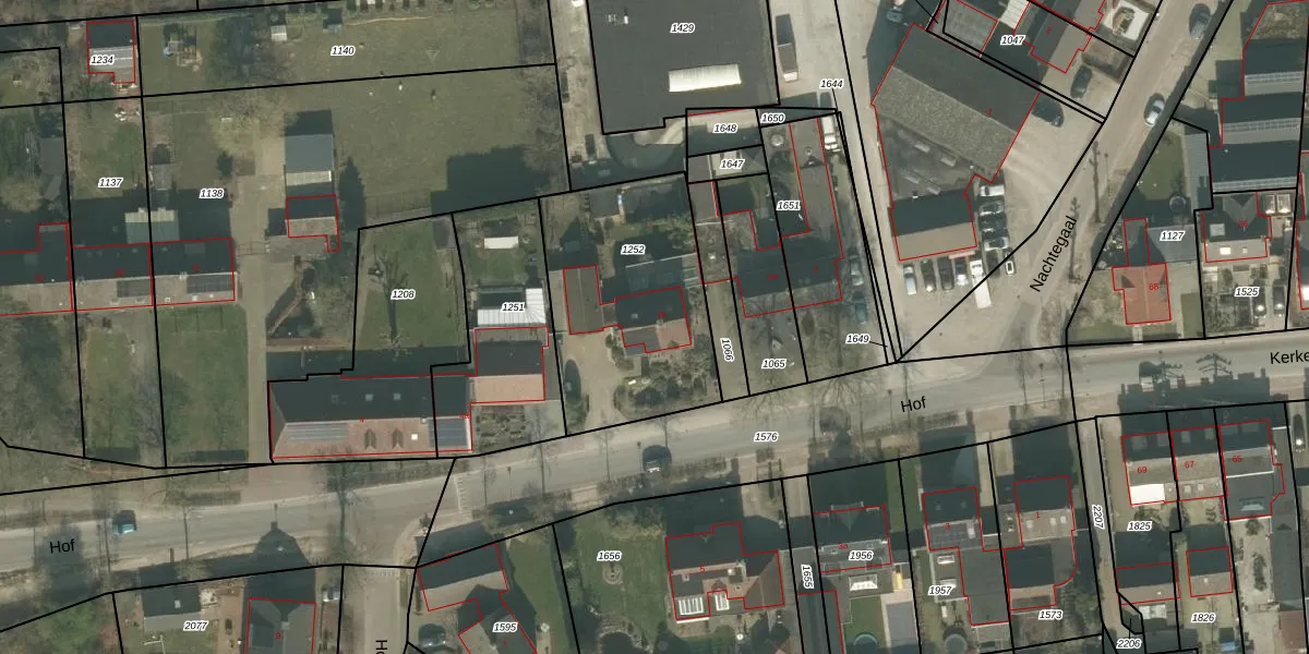 Het perceel waarop Hof 2-b staat heeft een oppervlakte van 855 m². Dit is een groot perceel. De perceeloppervlakte wordt geregistreerd door het Kadaster. Gedetailleerde informatie over de maten van dit perceel kunt u vinden in het rapport Kadastrale kaart met maatvoering van Hof 2-b.