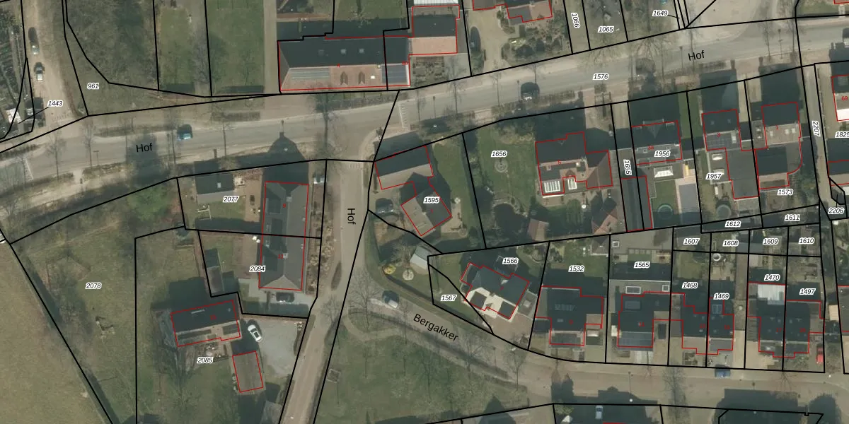 Het perceel waarop Hof 7 staat heeft een oppervlakte van 577 m². Dit is een groot perceel. De perceeloppervlakte wordt geregistreerd door het Kadaster. Gedetailleerde informatie over de maten van dit perceel kunt u vinden in het rapport Kadastrale kaart met maatvoering van Hof 7.