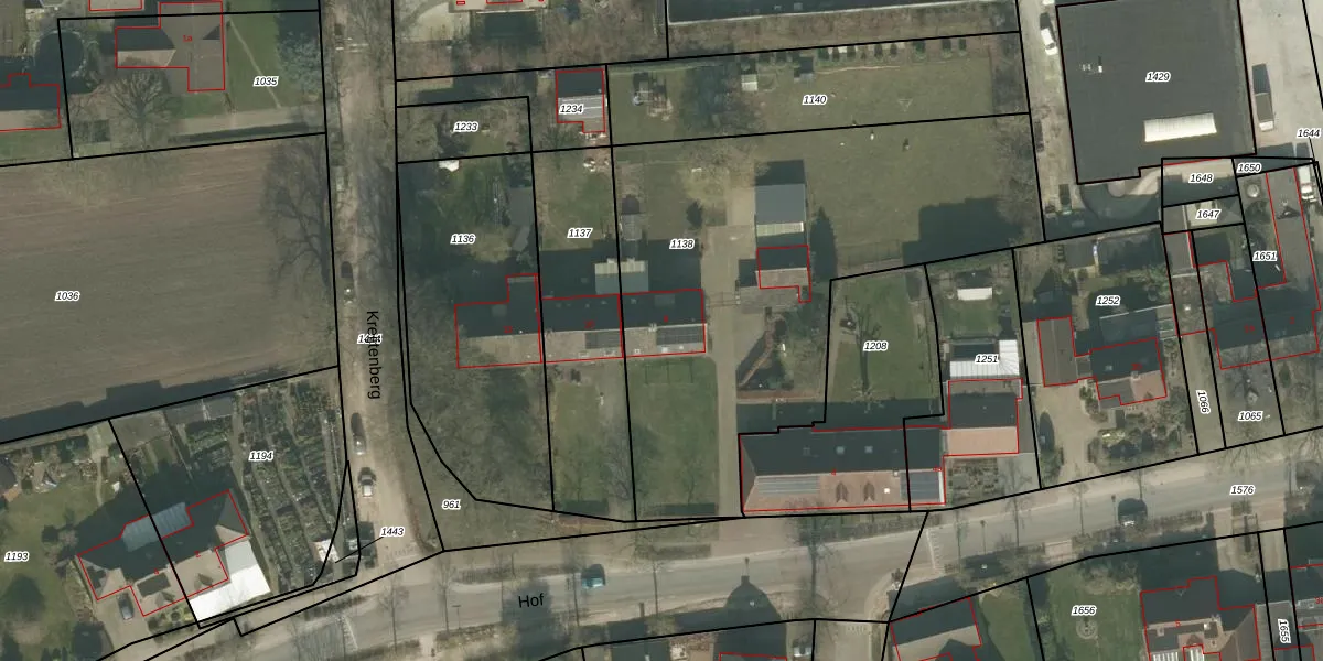 Het perceel waarop Hof 8 staat heeft een oppervlakte van 2270 m². Dit is een zeer groot perceel. De perceeloppervlakte wordt geregistreerd door het Kadaster. Gedetailleerde informatie over de maten van dit perceel kunt u vinden in het rapport Kadastrale kaart met maatvoering van Hof 8.