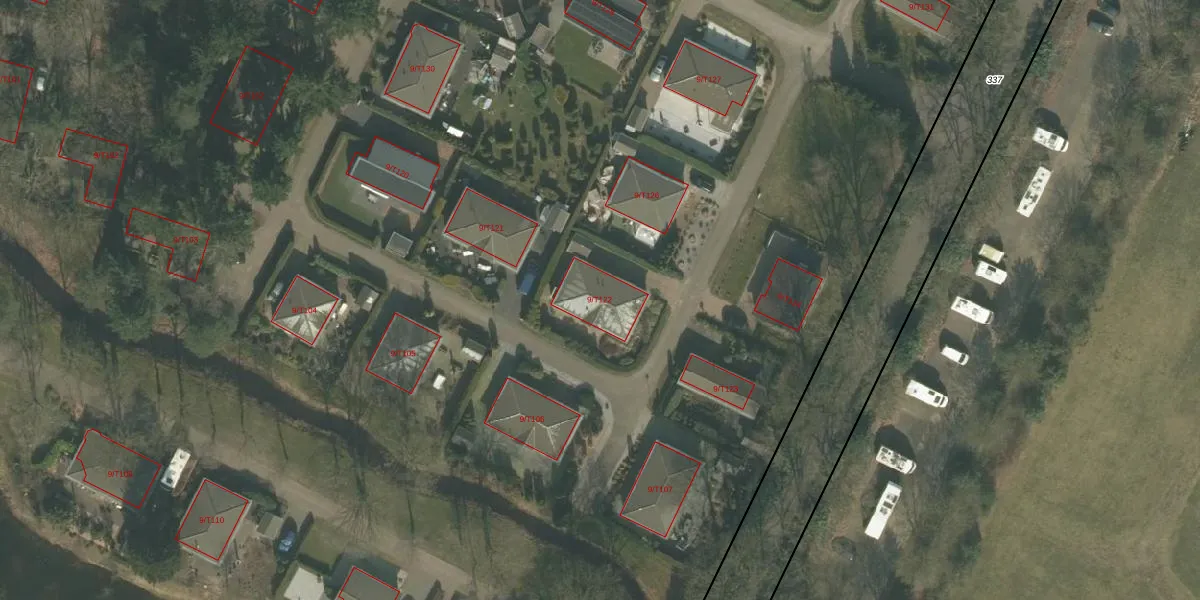 Het perceel waarop Kaak 9-T122 staat heeft een oppervlakte van 8,7 ha. Dit is een zeer groot perceel. De perceeloppervlakte wordt geregistreerd door het Kadaster. Gedetailleerde informatie over de maten van dit perceel kunt u vinden in het rapport Kadastrale kaart met maatvoering van Kaak 9-T122.