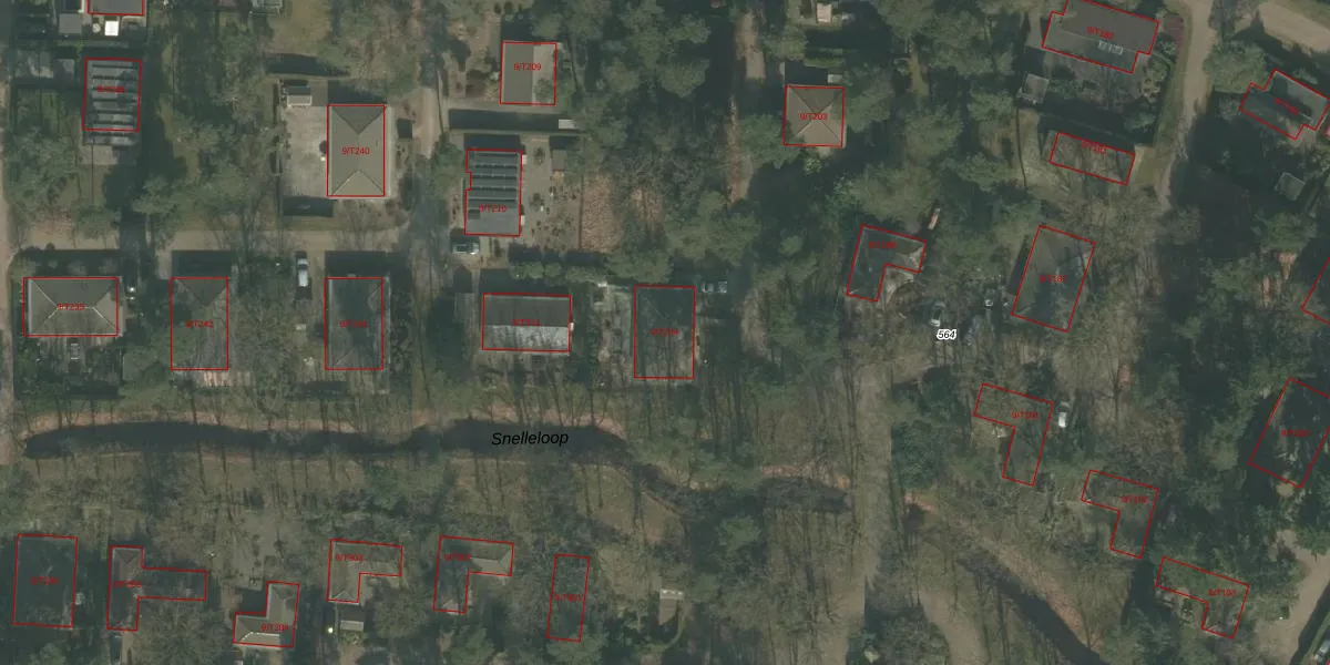 Het perceel waarop Kaak 9-T204 staat heeft een oppervlakte van 8,7 ha. Dit is een zeer groot perceel. De perceeloppervlakte wordt geregistreerd door het Kadaster. Gedetailleerde informatie over de maten van dit perceel kunt u vinden in het rapport Kadastrale kaart met maatvoering van Kaak 9-T204.