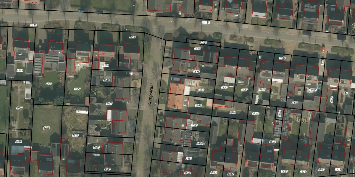 Kampstraat 5 is gelegen op kadastraal perceel BKL02P1362. Deze kadastrale aanduiding is uniek en wordt gebruikt door het Kadaster om eigendomsrechten en andere zakelijke rechten vast te leggen. Het perceel maakt onderdeel uit van de kadastrale gemeente Bakel en Milheeze.