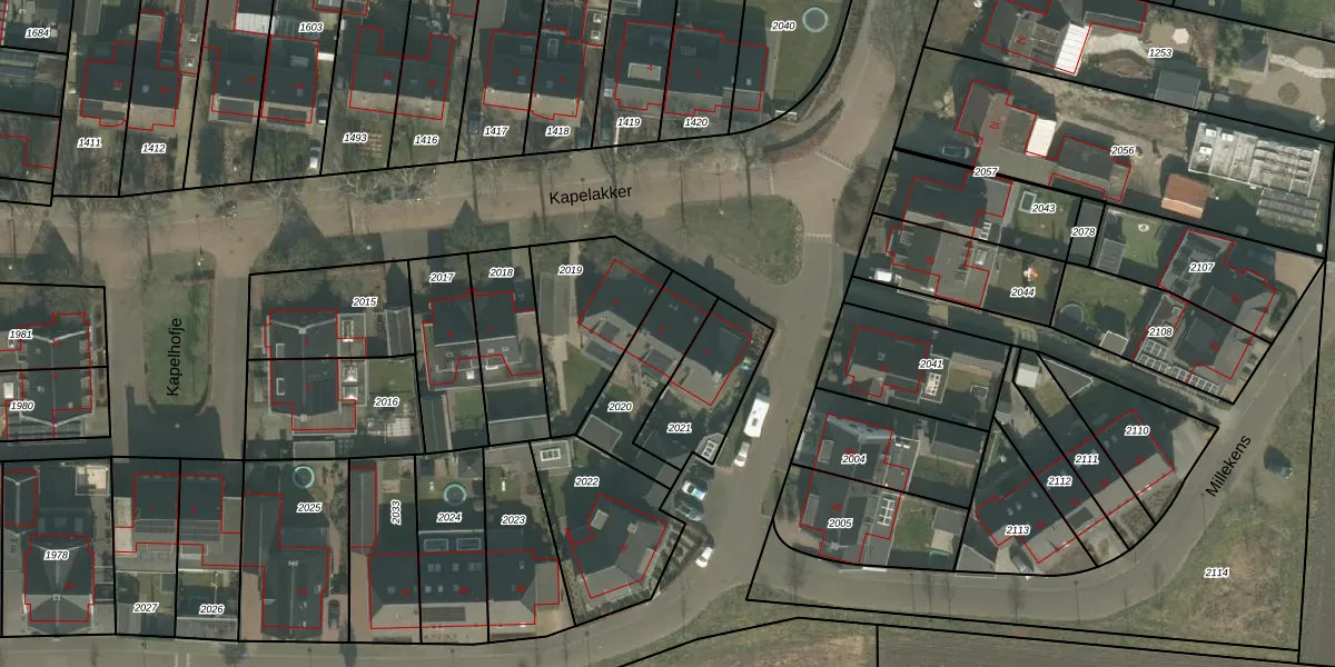 Gebruik de zoekbalk of klik op een perceel voor informatie over de adressen binnen dit perceel.