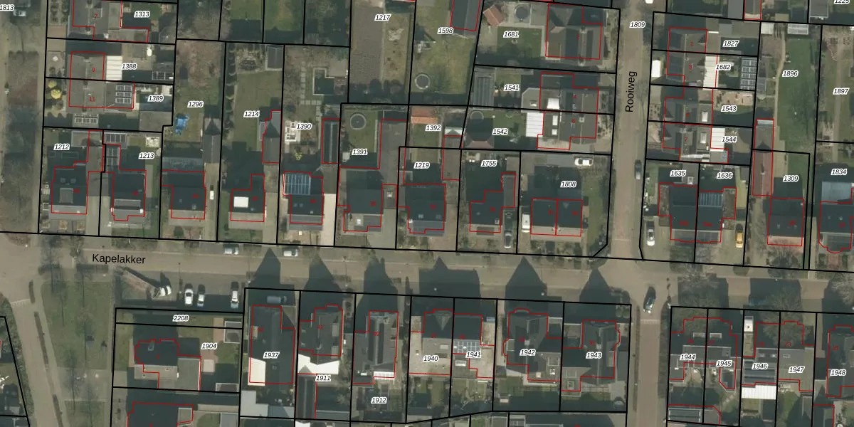 Het perceel waarop Kapelakker 36 staat heeft een oppervlakte van 347 m². Dit is een groot perceel. De perceeloppervlakte wordt geregistreerd door het Kadaster. Gedetailleerde informatie over de maten van dit perceel kunt u vinden in het rapport Kadastrale kaart met maatvoering van Kapelakker 36.