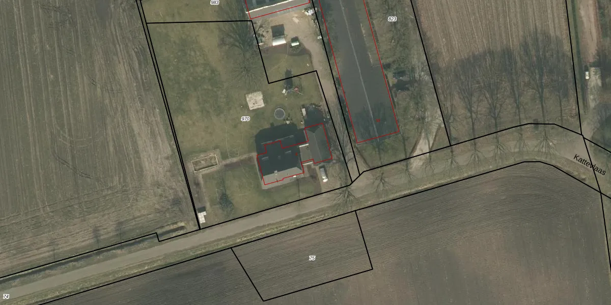 Het perceel waarop Kattevlaas 3 staat heeft een oppervlakte van 2885 m². Dit is een zeer groot perceel. De perceeloppervlakte wordt geregistreerd door het Kadaster. Gedetailleerde informatie over de maten van dit perceel kunt u vinden in het rapport Kadastrale kaart met maatvoering van Kattevlaas 3.