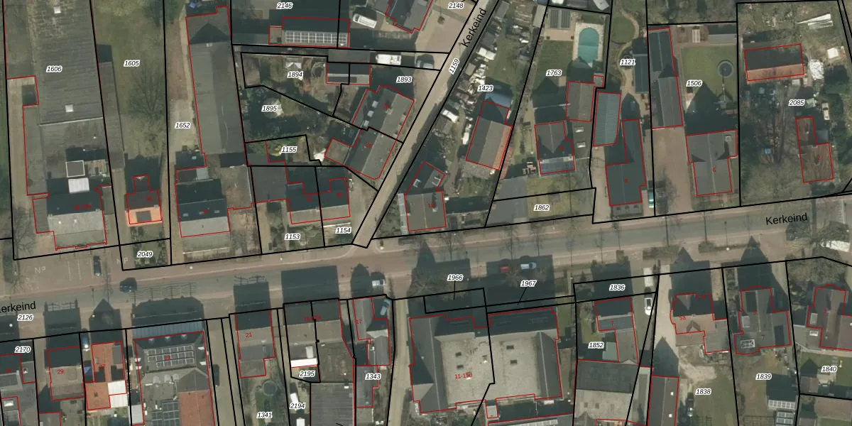 Het perceel waarop Kerkeind 18 staat heeft een oppervlakte van 1175 m². Dit is een zeer groot perceel. De perceeloppervlakte wordt geregistreerd door het Kadaster. Gedetailleerde informatie over de maten van dit perceel kunt u vinden in het rapport Kadastrale kaart met maatvoering van Kerkeind 18.