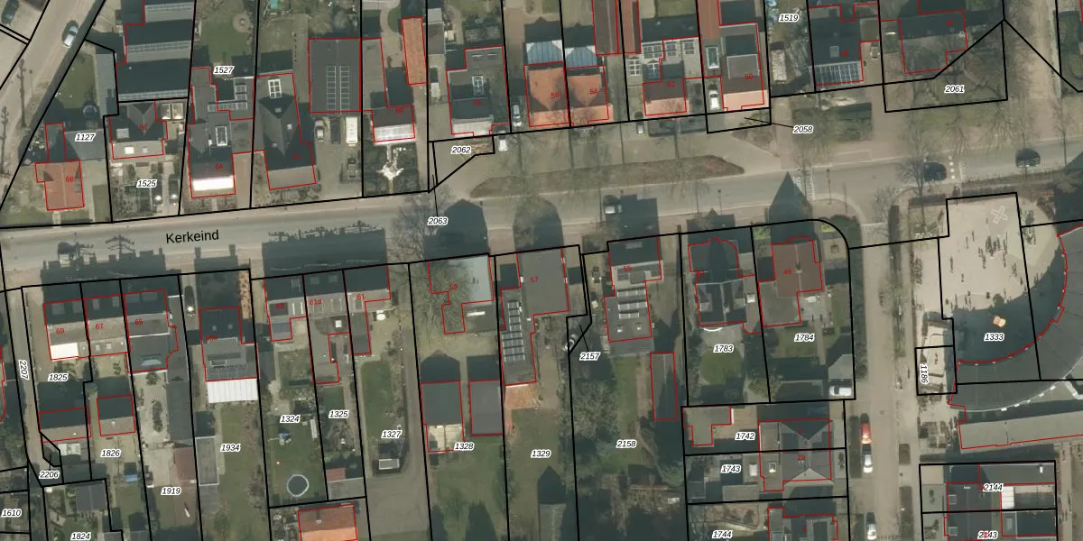 Het perceel waarop Kerkeind 57 staat heeft een oppervlakte van 909 m². Dit is een groot perceel. De perceeloppervlakte wordt geregistreerd door het Kadaster. Gedetailleerde informatie over de maten van dit perceel kunt u vinden in het rapport Kadastrale kaart met maatvoering van Kerkeind 57.