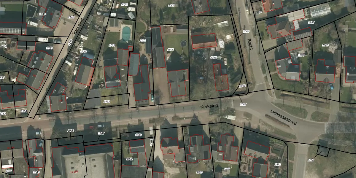 Kerkeind 6 is gelegen op kadastraal perceel BKL02P1506. Deze kadastrale aanduiding is uniek en wordt gebruikt door het Kadaster om eigendomsrechten en andere zakelijke rechten vast te leggen. Het perceel maakt onderdeel uit van de kadastrale gemeente Bakel en Milheeze.