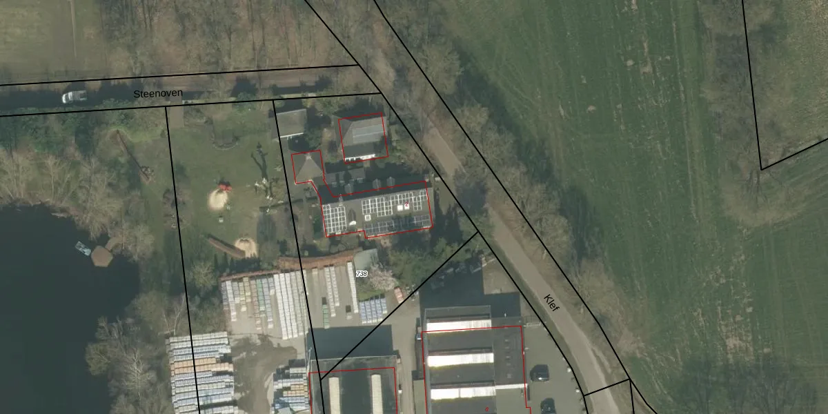 Het perceel waarop Klef 2 staat heeft een oppervlakte van 1955 m². Dit is een zeer groot perceel. De perceeloppervlakte wordt geregistreerd door het Kadaster. Gedetailleerde informatie over de maten van dit perceel kunt u vinden in het rapport Kadastrale kaart met maatvoering van Klef 2.