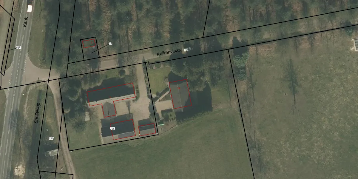 Het perceel waarop Kuikenvlaas 2-a staat heeft een oppervlakte van 1,9 ha. Dit is een zeer groot perceel. De perceeloppervlakte wordt geregistreerd door het Kadaster. Gedetailleerde informatie over de maten van dit perceel kunt u vinden in het rapport Kadastrale kaart met maatvoering van Kuikenvlaas 2-a.