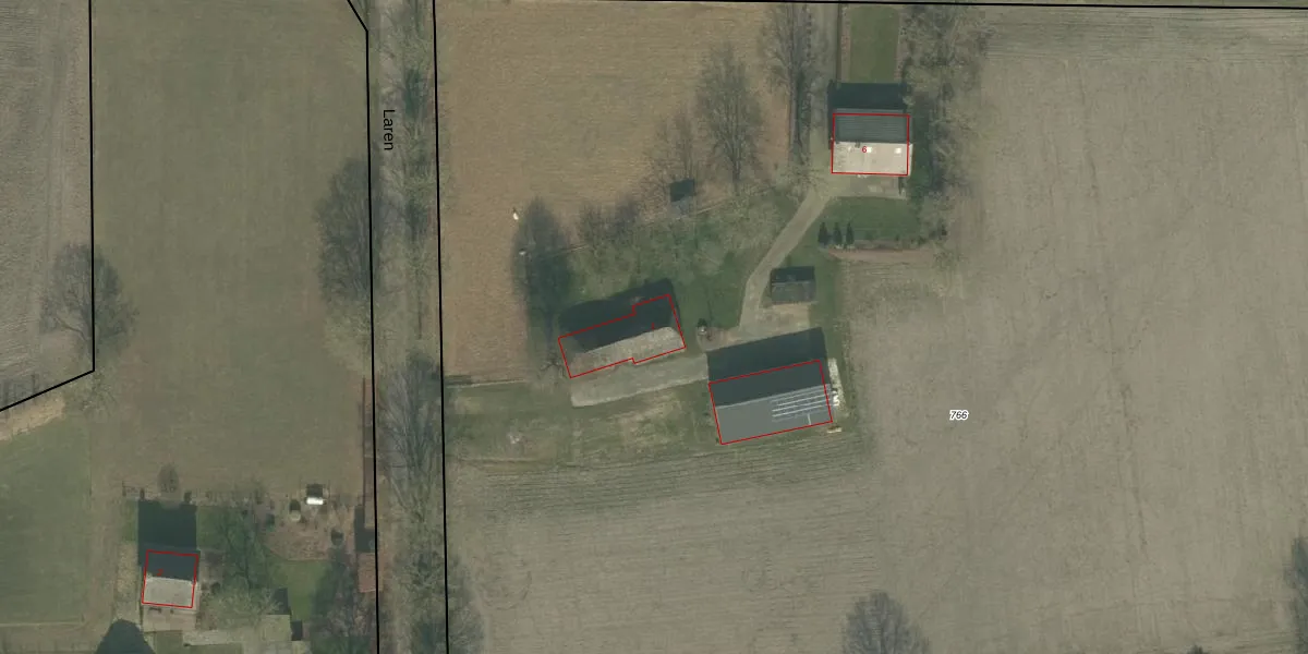 Het perceel waarop Laren 1 staat heeft een oppervlakte van 1,7 ha. Dit is een zeer groot perceel. De perceeloppervlakte wordt geregistreerd door het Kadaster. Gedetailleerde informatie over de maten van dit perceel kunt u vinden in het rapport Kadastrale kaart met maatvoering van Laren 1.