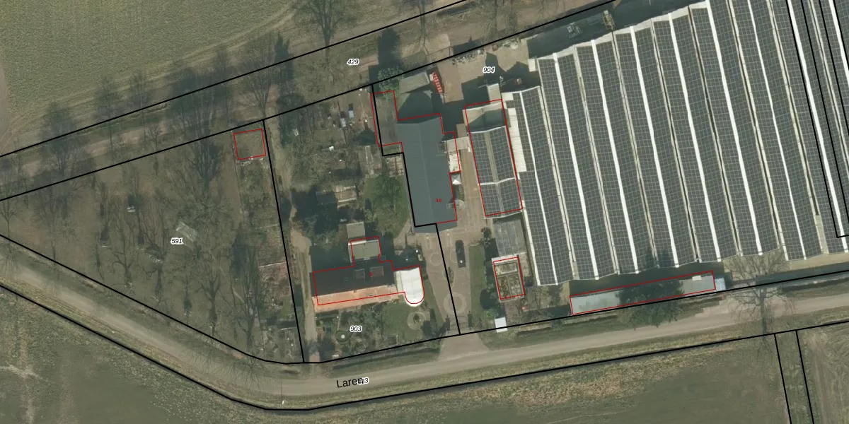 Het perceel waarop Laren 4-a staat heeft een oppervlakte van 1,5 ha. Dit is een zeer groot perceel. De perceeloppervlakte wordt geregistreerd door het Kadaster. Gedetailleerde informatie over de maten van dit perceel kunt u vinden in het rapport Kadastrale kaart met maatvoering van Laren 4-a.
