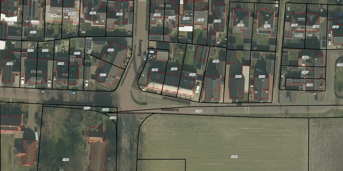 Het perceel waarop Millekens 20 staat heeft een oppervlakte van 347 m². Dit is een groot perceel. De perceeloppervlakte wordt geregistreerd door het Kadaster. Gedetailleerde informatie over de maten van dit perceel kunt u vinden in het rapport Kadastrale kaart met maatvoering van Millekens 20.