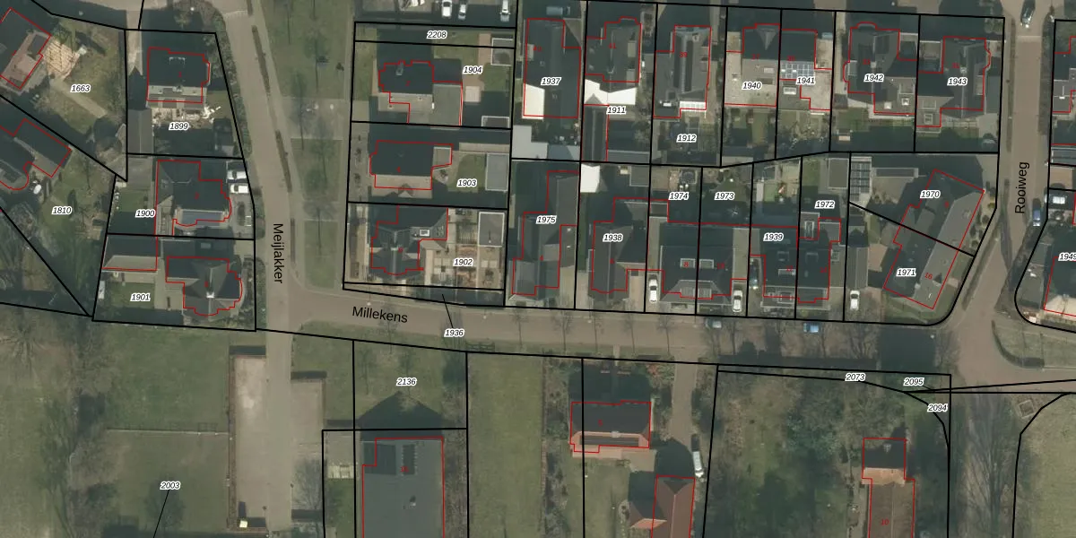 Het perceel waarop Millekens 4 staat heeft een oppervlakte van 360 m². Dit is een groot perceel. De perceeloppervlakte wordt geregistreerd door het Kadaster. Gedetailleerde informatie over de maten van dit perceel kunt u vinden in het rapport Kadastrale kaart met maatvoering van Millekens 4.