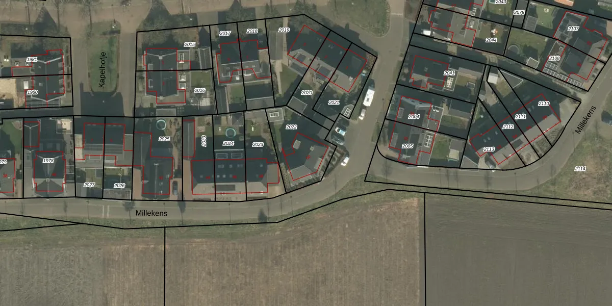 Het perceel waarop Millekens 50 staat heeft een oppervlakte van 408 m². Dit is een groot perceel. De perceeloppervlakte wordt geregistreerd door het Kadaster. Gedetailleerde informatie over de maten van dit perceel kunt u vinden in het rapport Kadastrale kaart met maatvoering van Millekens 50.