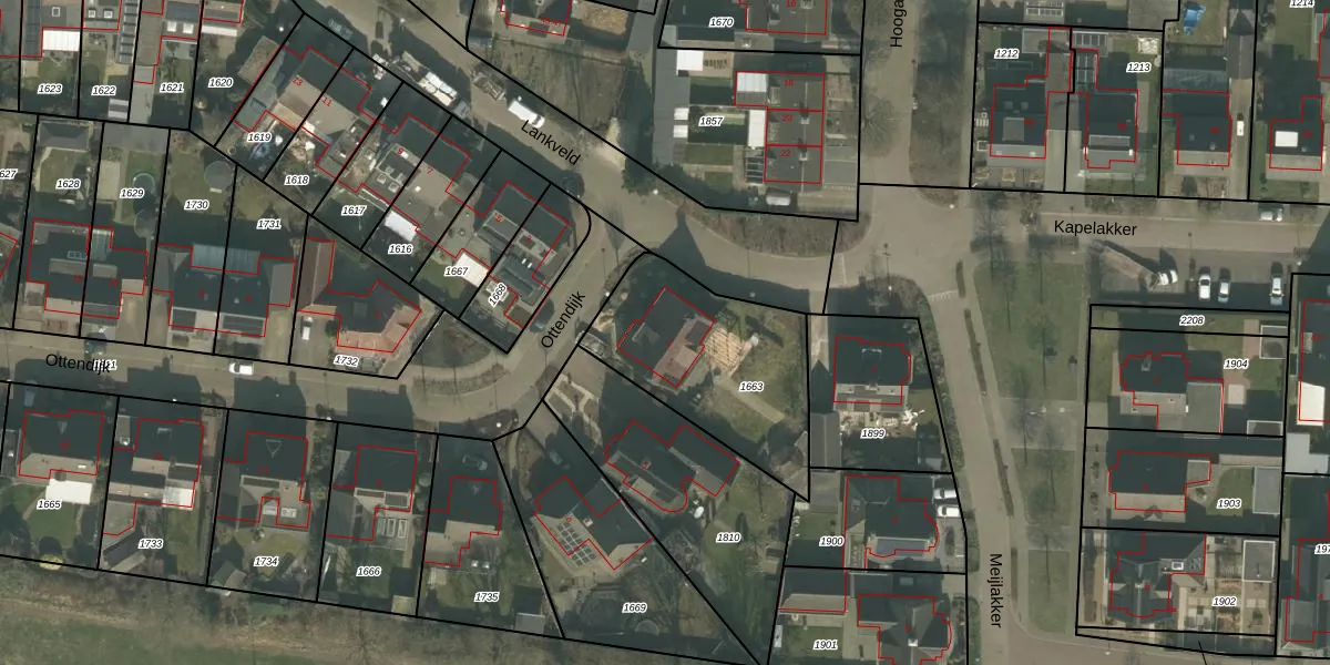 Het perceel waarop Ottendijk 1 staat heeft een oppervlakte van 685 m². Dit is een groot perceel. De perceeloppervlakte wordt geregistreerd door het Kadaster. Gedetailleerde informatie over de maten van dit perceel kunt u vinden in het rapport Kadastrale kaart met maatvoering van Ottendijk 1.