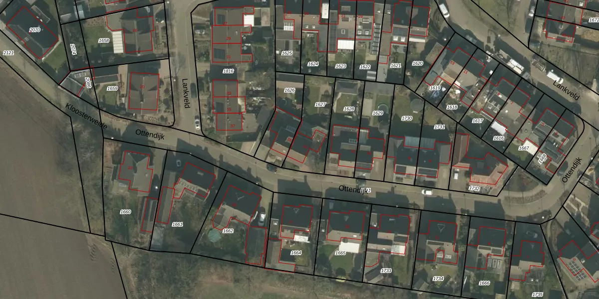 Het perceel waarop Ottendijk 14 staat heeft een oppervlakte van 349 m². Dit is een groot perceel. De perceeloppervlakte wordt geregistreerd door het Kadaster. Gedetailleerde informatie over de maten van dit perceel kunt u vinden in het rapport Kadastrale kaart met maatvoering van Ottendijk 14.