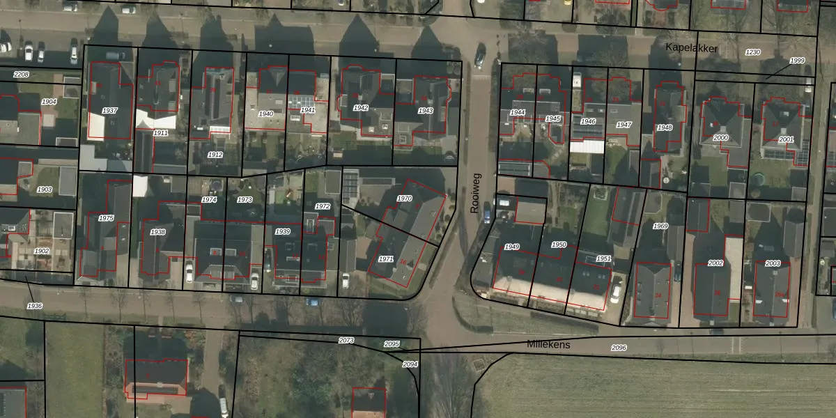 Rooiweg 8 is gelegen op kadastraal perceel BKL02P1970. Deze kadastrale aanduiding is uniek en wordt gebruikt door het Kadaster om eigendomsrechten en andere zakelijke rechten vast te leggen. Het perceel maakt onderdeel uit van de kadastrale gemeente Bakel en Milheeze.