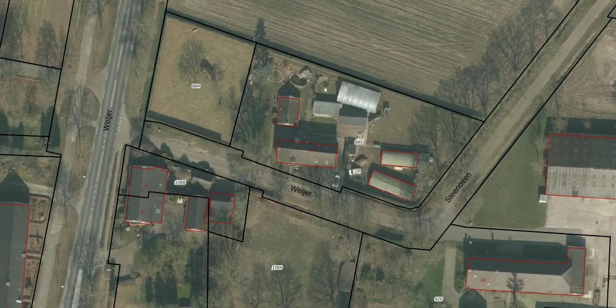 Het perceel waarop Weijer 12 staat heeft een oppervlakte van 2585 m². Dit is een zeer groot perceel. De perceeloppervlakte wordt geregistreerd door het Kadaster. Gedetailleerde informatie over de maten van dit perceel kunt u vinden in het rapport Kadastrale kaart met maatvoering van Weijer 12.