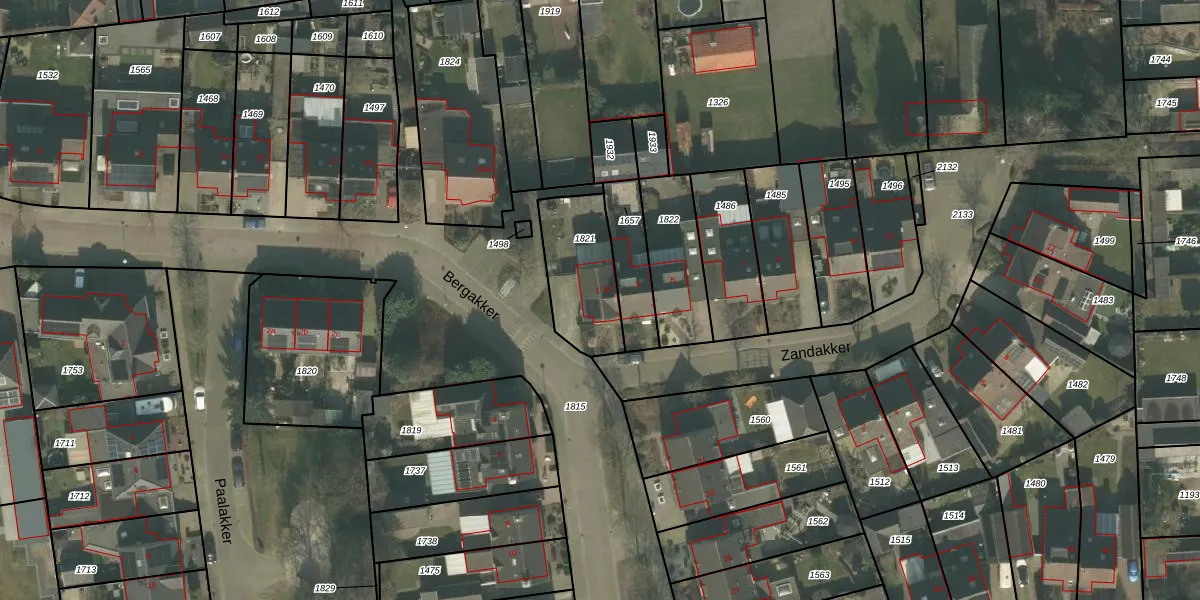 Zandakker 1 is gelegen op kadastraal perceel BKL02P1821. Deze kadastrale aanduiding is uniek en wordt gebruikt door het Kadaster om eigendomsrechten en andere zakelijke rechten vast te leggen. Het perceel maakt onderdeel uit van de kadastrale gemeente Bakel en Milheeze.