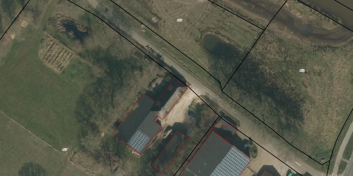 Het perceel waarop Achterdijk 14 staat heeft een oppervlakte van 1,8 ha. Dit is een zeer groot perceel. De perceeloppervlakte wordt geregistreerd door het Kadaster. Gedetailleerde informatie over de maten van dit perceel kunt u vinden in het rapport Kadastrale kaart met maatvoering van Achterdijk 14.