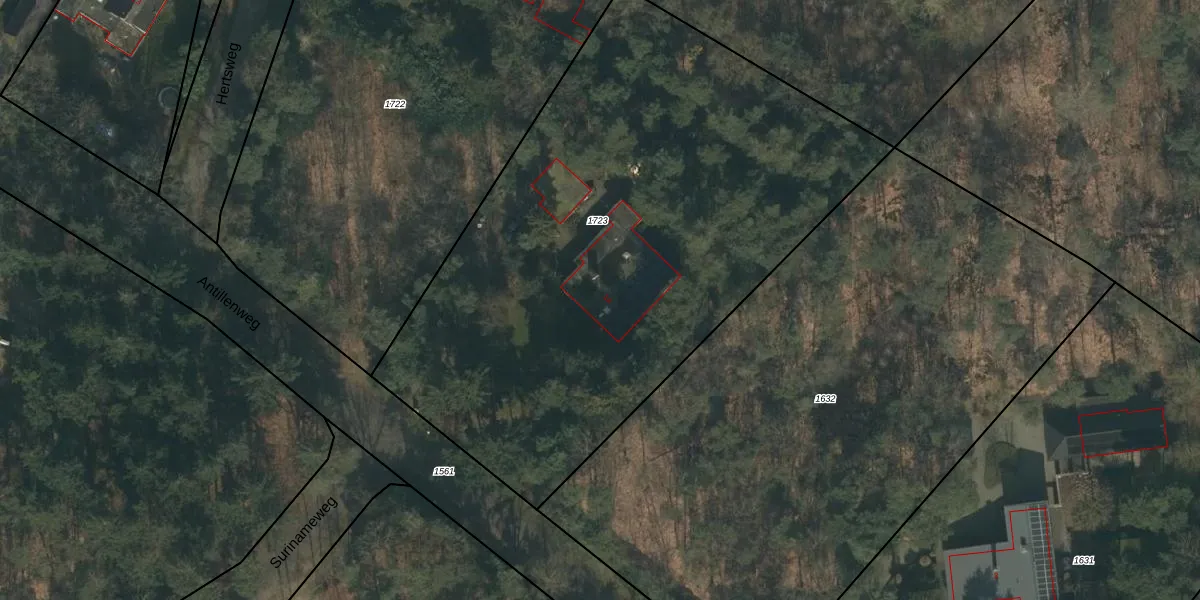 Het perceel waarop Antillenweg 1-a staat heeft een oppervlakte van 3550 m². Dit is een zeer groot perceel. De perceeloppervlakte wordt geregistreerd door het Kadaster. Gedetailleerde informatie over de maten van dit perceel kunt u vinden in het rapport Kadastrale kaart met maatvoering van Antillenweg 1-a.