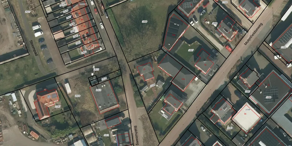 Bakhuisweg 13 is gelegen op kadastraal perceel MIL00D2298. Deze kadastrale aanduiding is uniek en wordt gebruikt door het Kadaster om eigendomsrechten en andere zakelijke rechten vast te leggen. Het perceel maakt onderdeel uit van de kadastrale gemeente Mill.
