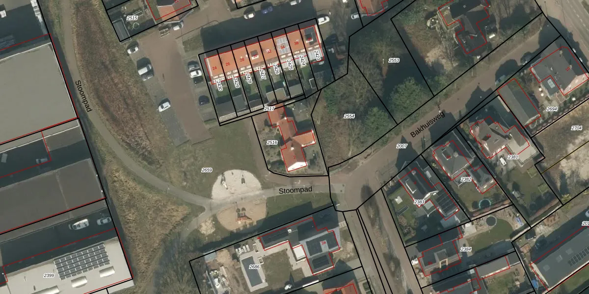 Bakhuisweg 2 is gelegen op kadastraal perceel MIL00D2516. Deze kadastrale aanduiding is uniek en wordt gebruikt door het Kadaster om eigendomsrechten en andere zakelijke rechten vast te leggen. Het perceel maakt onderdeel uit van de kadastrale gemeente Mill.