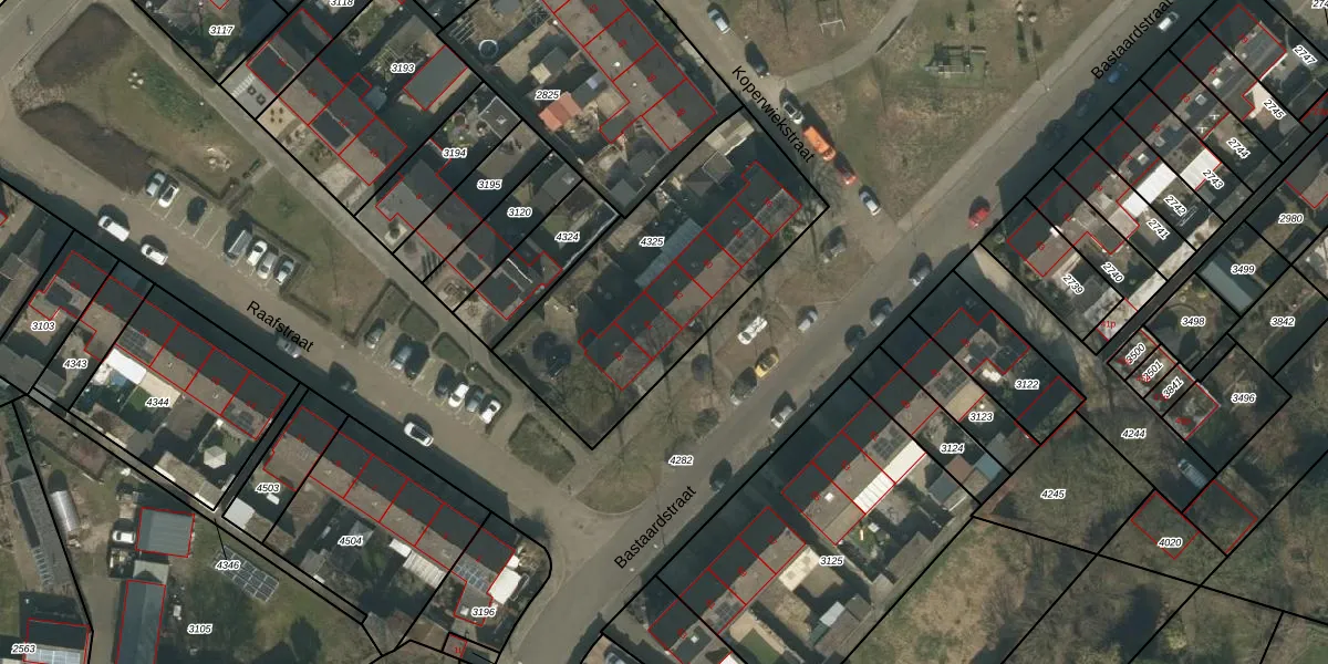 Bastaardstraat 44 is gelegen op kadastraal perceel MIL00F4325. Deze kadastrale aanduiding is uniek en wordt gebruikt door het Kadaster om eigendomsrechten en andere zakelijke rechten vast te leggen. Het perceel maakt onderdeel uit van de kadastrale gemeente Mill.