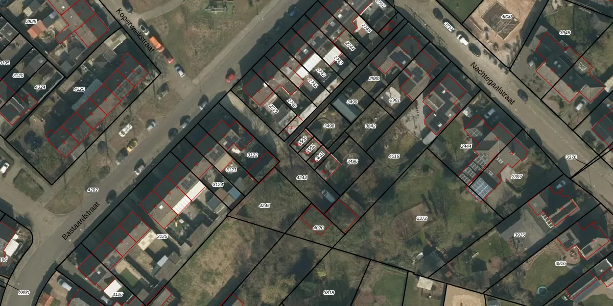 Bastaardstraat 45-p is gelegen op kadastraal perceel MIL00F3501. Deze kadastrale aanduiding is uniek en wordt gebruikt door het Kadaster om eigendomsrechten en andere zakelijke rechten vast te leggen. Het perceel maakt onderdeel uit van de kadastrale gemeente Mill.