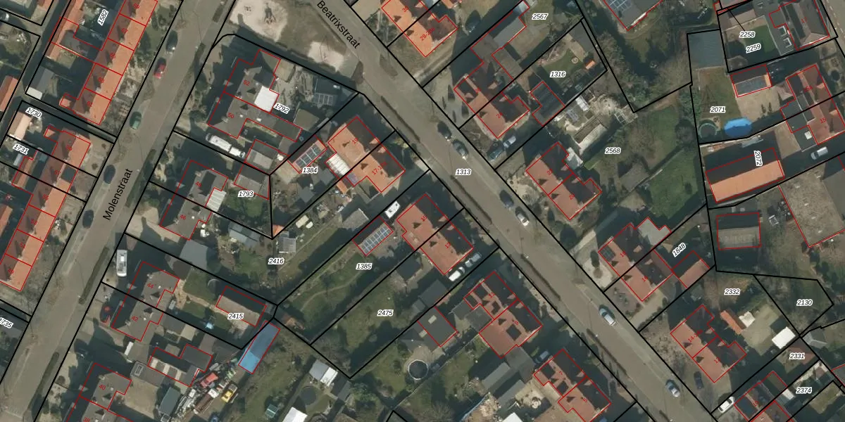 Beatrixstraat 15 is gelegen op kadastraal perceel MIL00G1385. Deze kadastrale aanduiding is uniek en wordt gebruikt door het Kadaster om eigendomsrechten en andere zakelijke rechten vast te leggen. Het perceel maakt onderdeel uit van de kadastrale gemeente Mill.