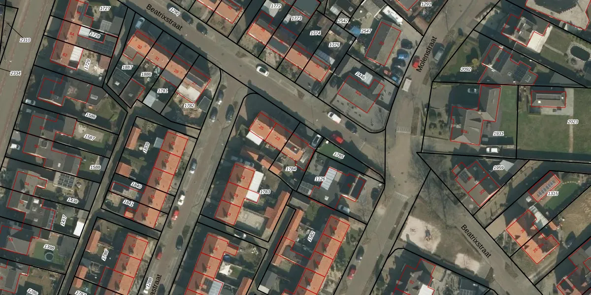 Beatrixstraat 21 is gelegen op kadastraal perceel MIL00G1784. Deze kadastrale aanduiding is uniek en wordt gebruikt door het Kadaster om eigendomsrechten en andere zakelijke rechten vast te leggen. Het perceel maakt onderdeel uit van de kadastrale gemeente Mill.