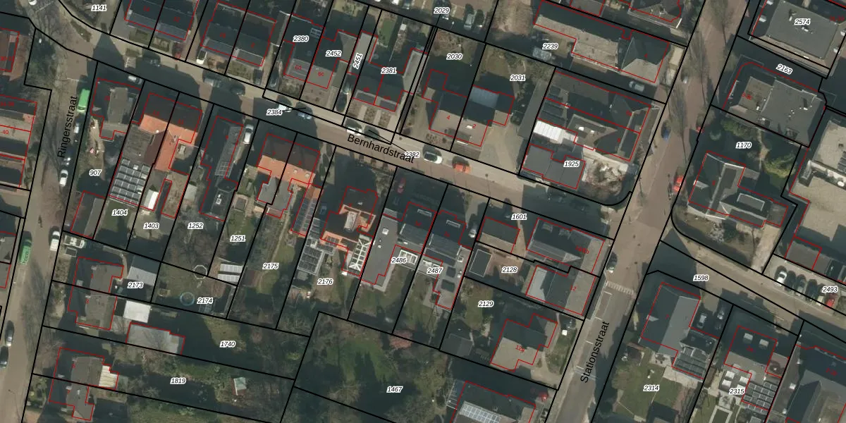Het perceel waarop Bernhardstraat 1-d staat heeft een oppervlakte van 450 m². Dit is een groot perceel. De perceeloppervlakte wordt geregistreerd door het Kadaster. Gedetailleerde informatie over de maten van dit perceel kunt u vinden in het rapport Kadastrale kaart met maatvoering van Bernhardstraat 1-d.