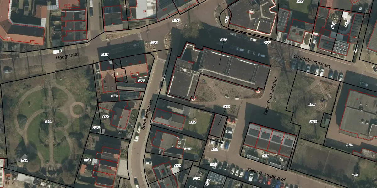 Het perceel waarop Bernhardstraat 36 staat heeft een oppervlakte van 890 m². Dit is een groot perceel. De perceeloppervlakte wordt geregistreerd door het Kadaster. Gedetailleerde informatie over de maten van dit perceel kunt u vinden in het rapport Kadastrale kaart met maatvoering van Bernhardstraat 36.
