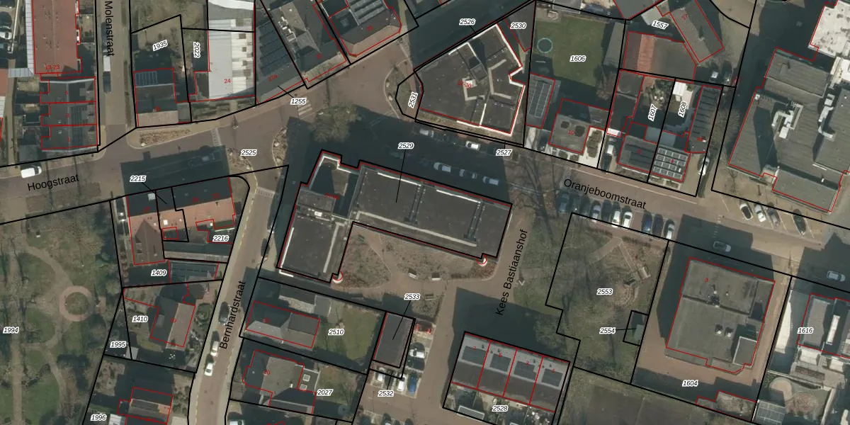 Bernhardstraat 44 is gelegen op kadastraal perceel MIL00G2529. Deze kadastrale aanduiding is uniek en wordt gebruikt door het Kadaster om eigendomsrechten en andere zakelijke rechten vast te leggen. Het perceel maakt onderdeel uit van de kadastrale gemeente Mill.