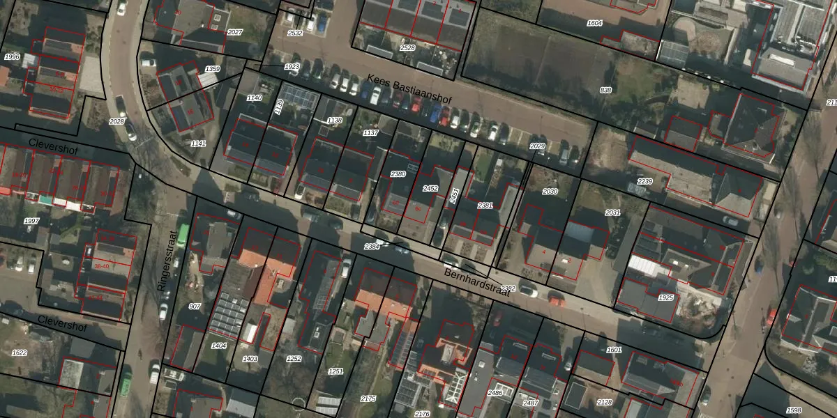 Gebruik de zoekbalk of klik op een perceel voor informatie over de adressen binnen dit perceel.